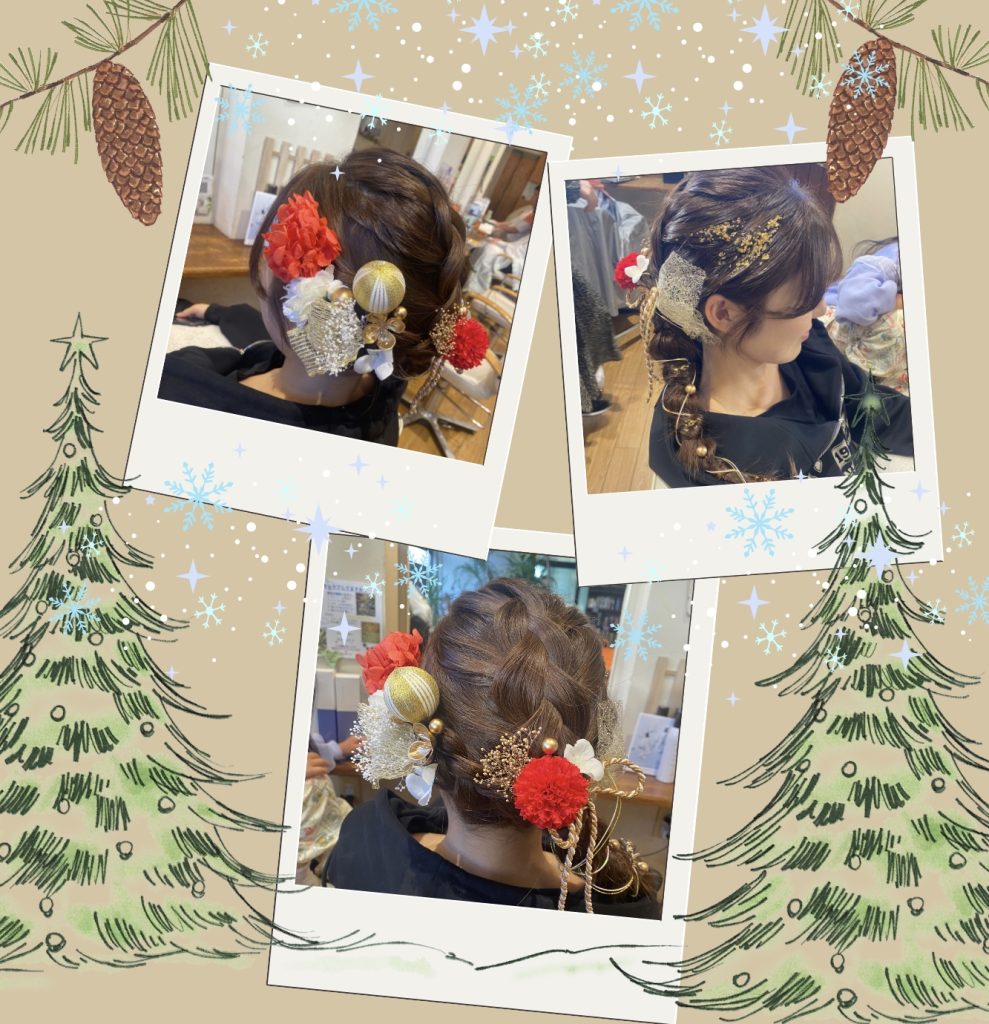 皆さんこんばんは!!松戸八柱美容室TplaceTieplaceの小林です! . . 12月も成人式前撮りのお客様多数やらせていただきました〜!編みおろしヘア(。・ω・。)飾りはもちろんですが金箔や水引きあるとさらに引き立ちますね(*’▽’*)髪型も飾りも多種多様で毎年勉強にもなりますヽ(´▽`)/